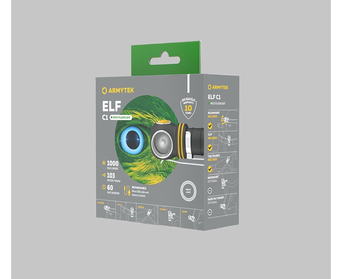 Впечатляющие 1000 люмен в корпусе весом всего 56 грамм. Elf C1 станет отличным основным или дополнительным источником света для любых повседневных активностей. Фонарь можно взять с собой на вечернюю прогулку, на охоту, рыбалку или в поход. Он не займет много места, с легкостью поместится в сумке и не потребует подзарядки в течение 2 месяцев на минимальной яркости. Фонарь также способен работать в режиме лампы — от источника питания с выходом USB и без аккумулятора внутри. Micro USB разъем избавляет от необходимости носить с собой зарядное устройство: для зарядки подойдет любой Micro USB кабель. Мощный встроенный магнит, съемная клипса и налобное крепление обеспечивают несколько вариантов фиксации, а дополнительное отверстие в задней крышке делает Elf C1 полноценным мультифонарем 5 в 1.