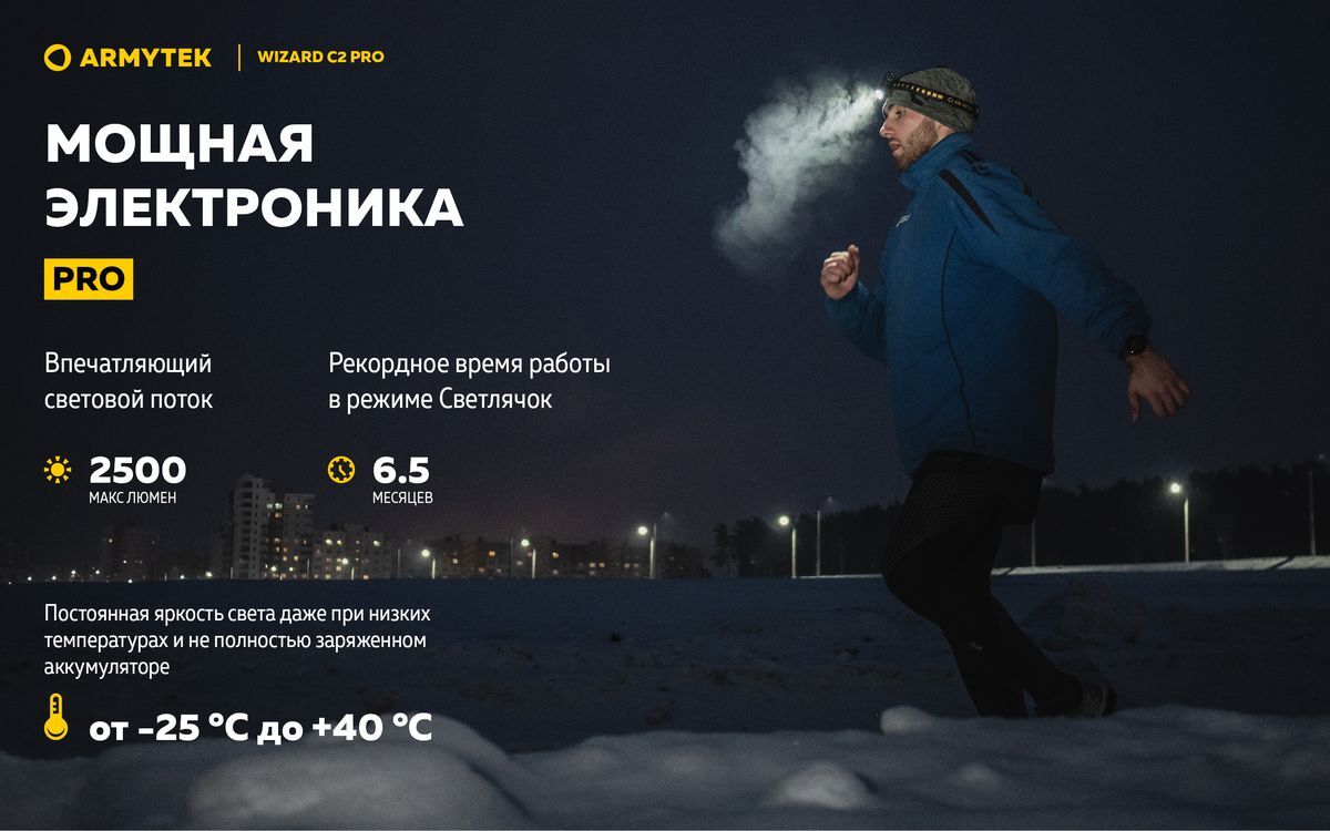 - Pro Мощная электроника обеспечивает впечатляющий световой поток и рекордное время работы. Постоянная яркость света даже при низких температурах и не полностью заряженном аккумуляторе.