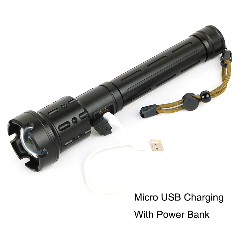 Комплектация: фонарь, два аккумулятора 26650, два переходника на ААА батарейки, провод зарядки usb-usb-c, темляк