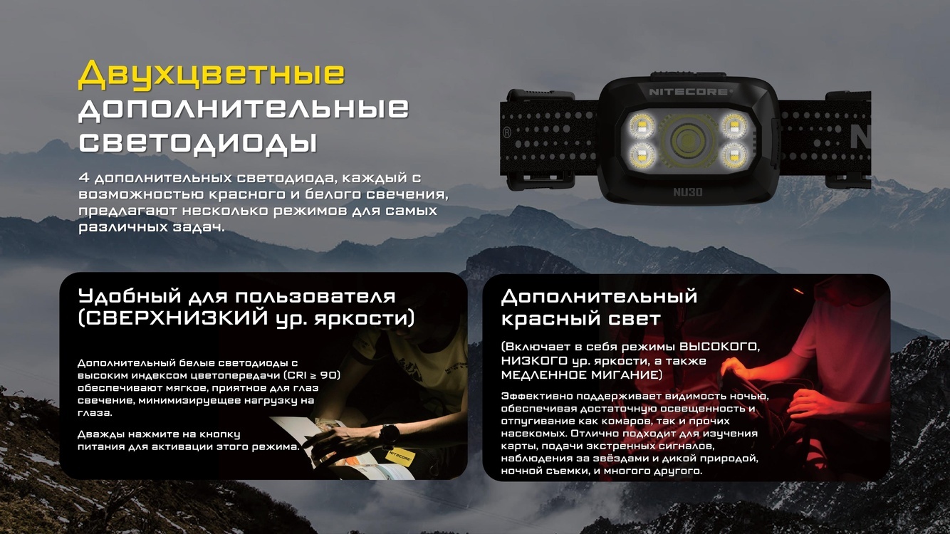 Nitecore NU30 UHE — это идеальный выбор для активного отдыха, рыбалки, туризма и охоты, а также для повседневного использования.