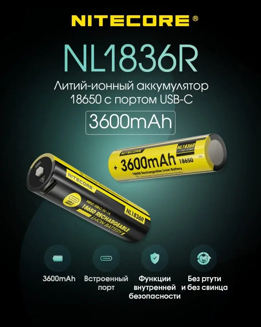 Одной из ключевых особенностей Nitecore NL1836R является наличие встроенной интеллектуальной платы, которая обеспечивает надежную защиту от перезаряда, переразряда и короткого замыкания.