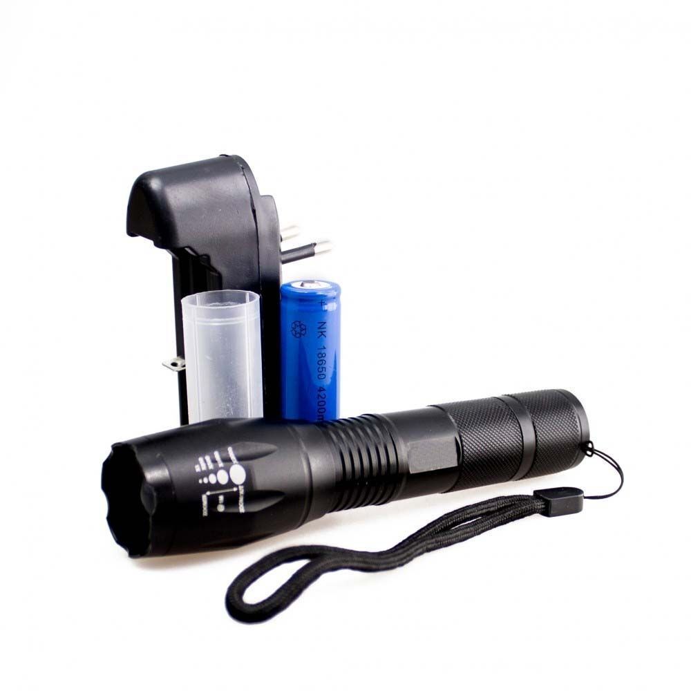 Управляется торцевой кнопкой. Может работать от одного аккумулятора 18650 ( в комплекте) или от трех батареек AAA через переходник( в комплекте)