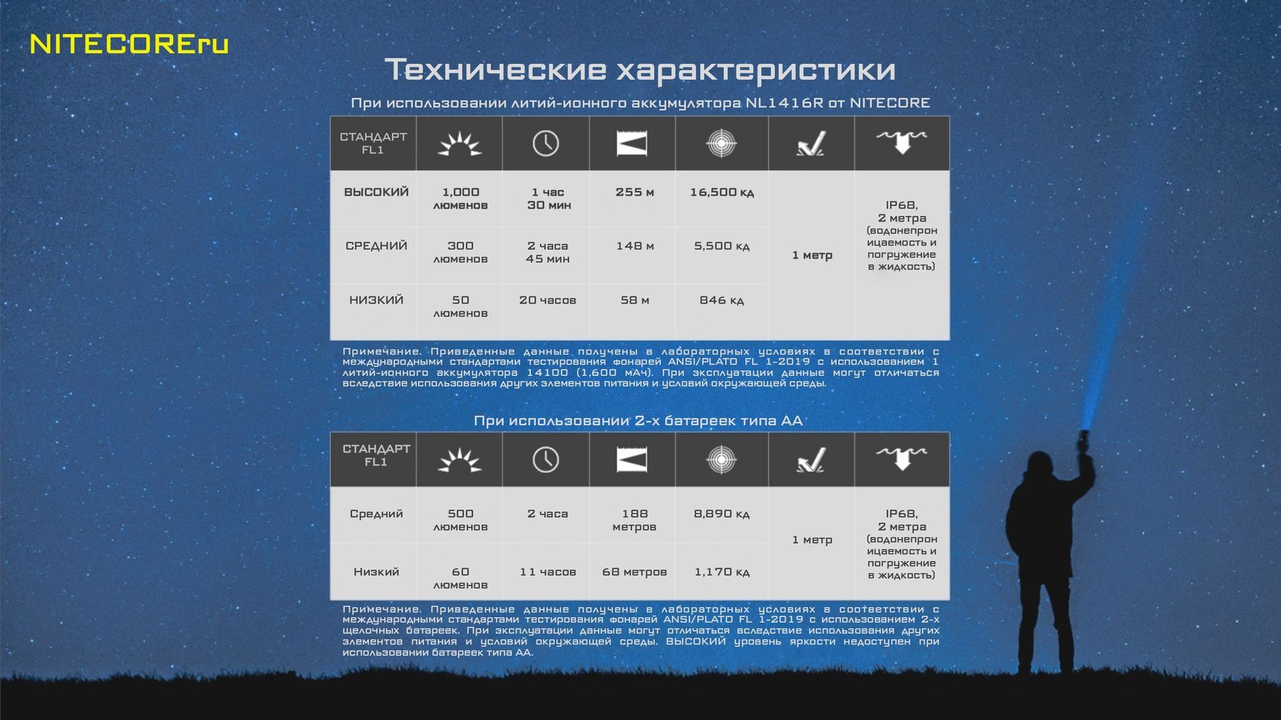 Пиковая интенсивность луча равняется 16 500 кд, а максимальный радиус действия — 255 метров