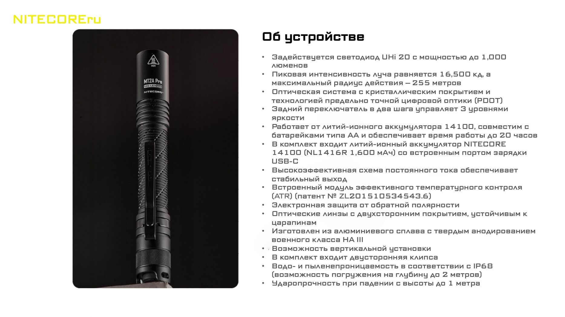 Карманный фонарь Nitecore MT2A Pro - универсальный ручной фонарь, который может работать от двух источников питания.