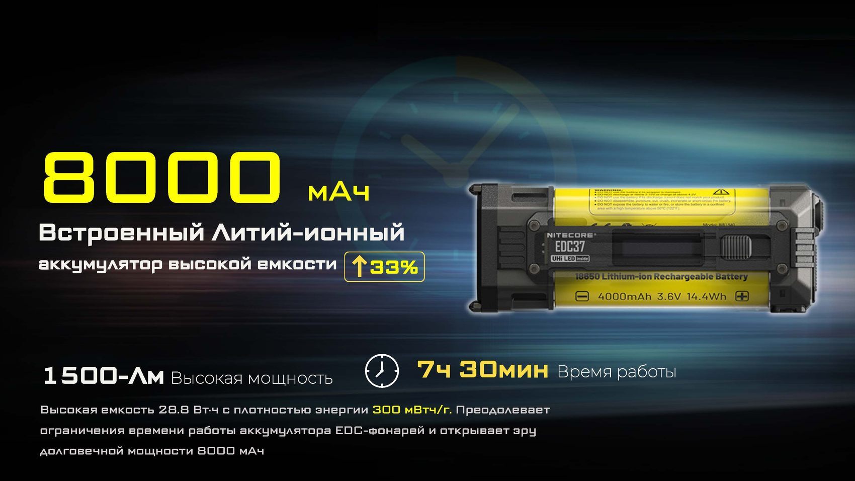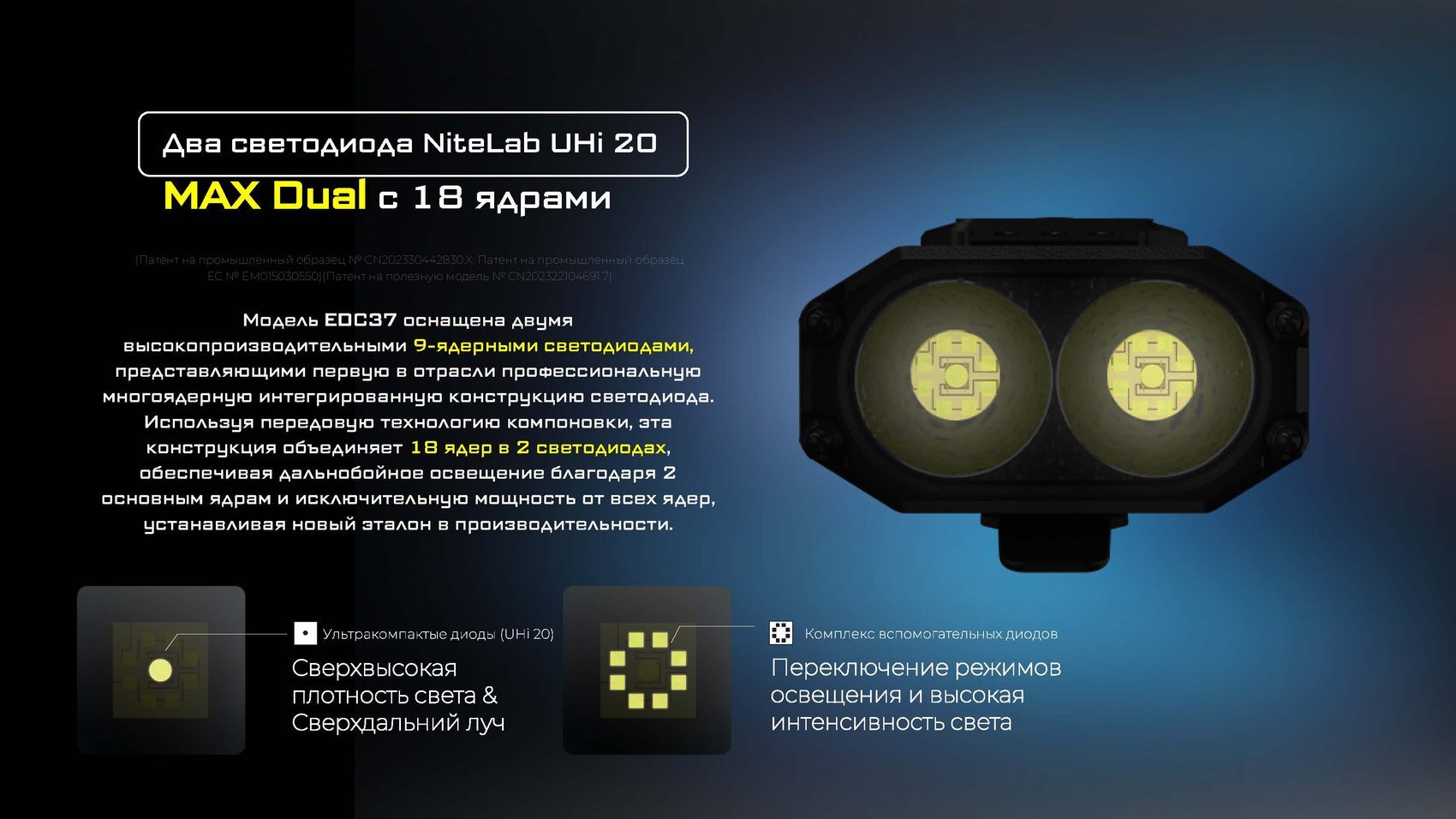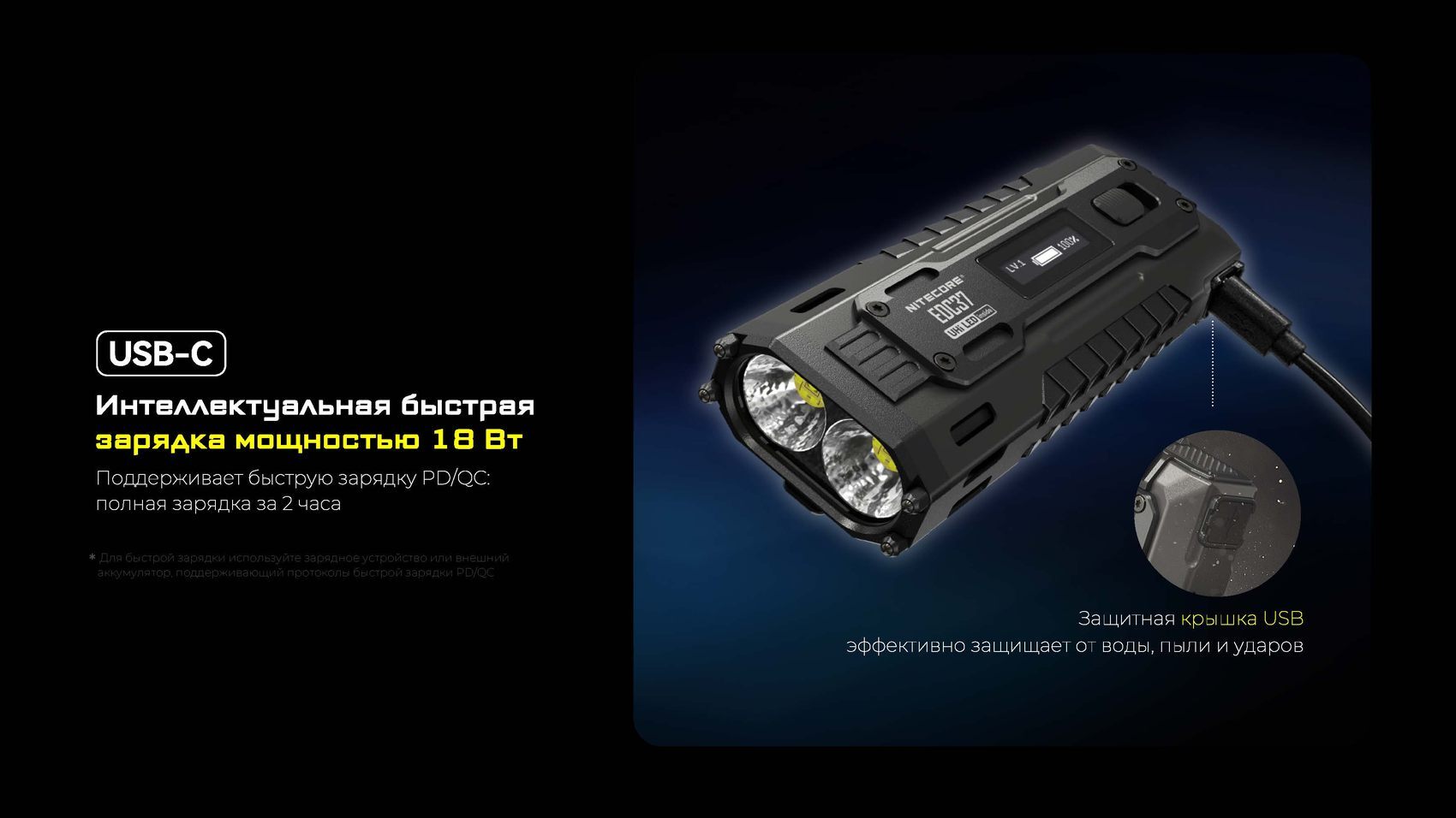 Одной из главных инноваций EDC37 является встроенный OLED-дисплей, который в реальном времени информирует пользователя о текущем режиме яркости, уровне заряда аккумулятора и оставшемся времени работы. Это обеспечивает полный контроль над устройством и позволяет эффективно планировать его использование.