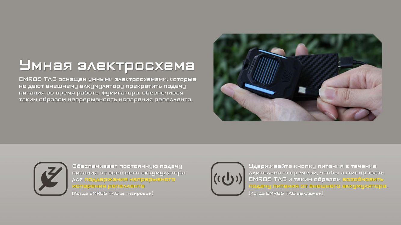 NiteCore EMR05 TAC компактный фумигатор для работы в помещении и на открытом воздухе. Он имеет встроенный порт USB-C, работает от внешнего источника и обеспечивает защиту на расстояние до 5 метров.
