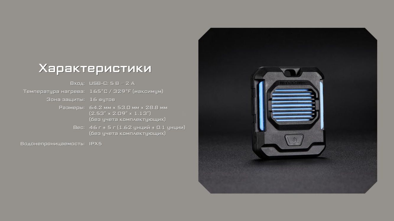 Размер противомоскитной пластины NITECORE: 34 x 48 мм / 1,34 x 1,89 дюйма (каждая обеспечивает защиту до 6 часов). Дополнительные пластины можно приобрести отдельно NiteCore MRM10