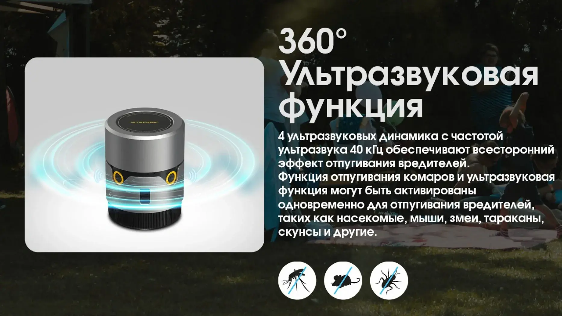 Помимо отпугивания комаров, Nitecore EMR30 имеет функцию ультразвукового отпугивания, которая защищает от тараканов, змей, грызунов и других “непрошенных гостей”.