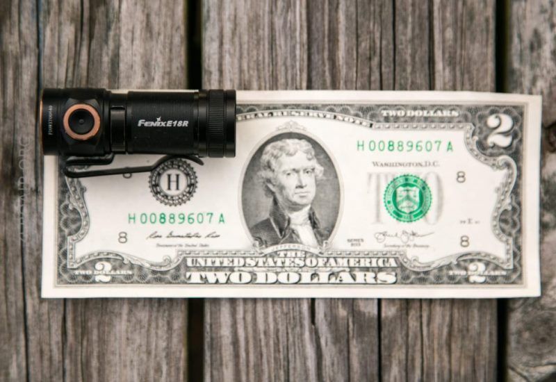 Длина Fenix E18R всего 60 мм, диаметр корпуса 20 мм, а головной части – 21 мм. Вес фонаря без аккумулятора равен 33,3 г.