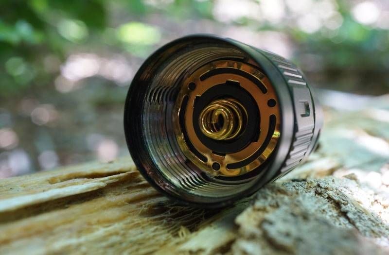 Резьба батарейного отсека хорошо смазана, но не имеет анодированного покрытия. Благодаря небольшой пружине на крышке отсека аккумулятор плотно сидит внутри корпуса.