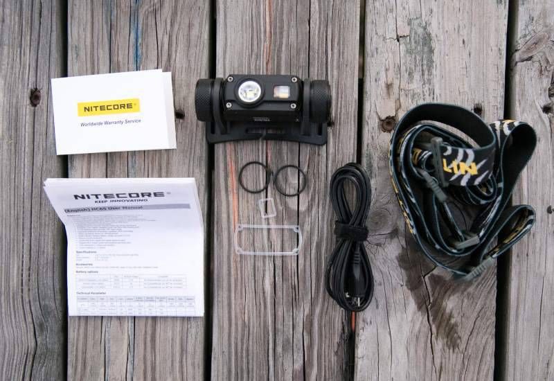 Помимо фонаря в упаковке находятся аккумулятор 18650 ёмкостью 3400 мА·ч, USB-кабель для зарядки, крепления для головы, держатель, запасное уплотнительное кольцо и пользовательская инструкция.